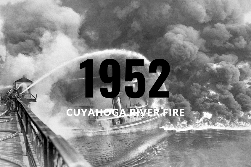 The river in 1969 was described by Clevelander Frank Samsel as “smelling like a septic tank bubbling methane in the summer months.” The fire began when a spark from a train crossing a bridge over the river ignited all the toxic junk in the river which raged until a fireboat put out the fire.