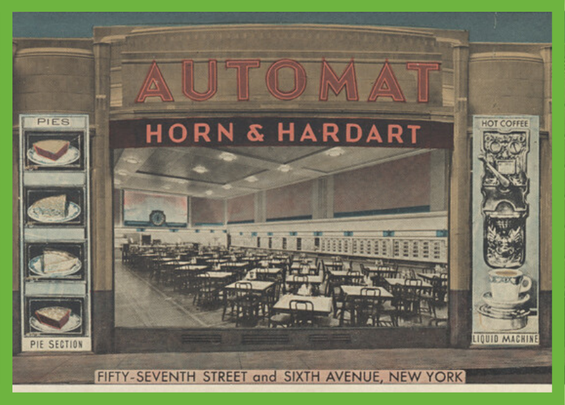 Harry Greenwald got the idea of the name “Laundromat” from his favorite Times Square lunch hangout, the Horn & Hardart Automat restaurant. For those too young to remember this New York City icon, I will explain its workings from my own personal experience. Glass door cabinets covered the walls of the restaurant (precursors to the sophisticated hot food vending machines of today). The consumer dropped a coin into a slot and chose his entree as the door unlocked. Harry combined the words, laundry with automat, and that is how the laundromat got its name.