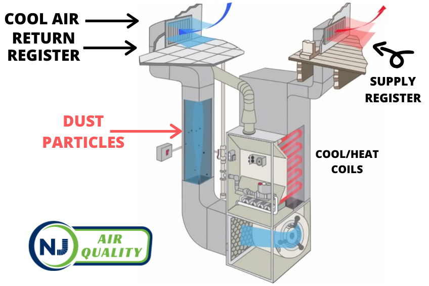 There are a few reasons why the dust stuck in your air ducts gets back into your home. True, it appears to the common homeowner, that there is separate air intake (return air grille) and air output (air register vent), as the air is passing back and forth through the same ductwork. When the air is cooled/heated and heading back through the air register vent, it may pick up dust, dirt, dander, and allergens which are stuck in the supply and return plenum. Both residential and commercial ducts can build up an accumulation of thick dust over the course of years and even decades.