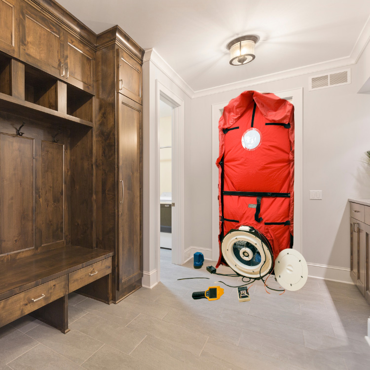 The ideal time to conduct a blower door test is after insulation has been installed throughout the building or home. It’s not uncommon for contractors to find that newly installed windows and doors have air leakage that will negatively impact a blower door test. The opportune time to have a blower door test is while the construction is still raw. This gives the contractor the flexibility of fixing the air leakage issues if the test results in a failure. The last thing the homeowner would want is the contractor to start ripping up sheetrock to fix spots that have air leakage.